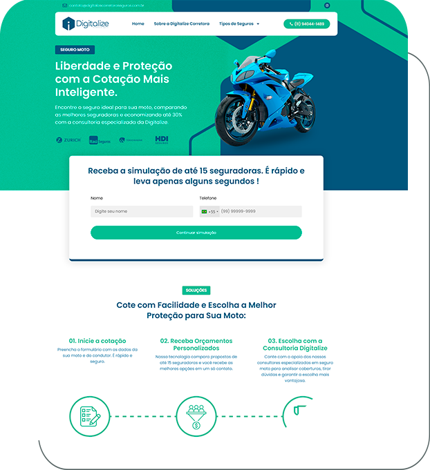 Um site profissional posiciona sua corretora como referência e transmite segurança para o cliente contratar.